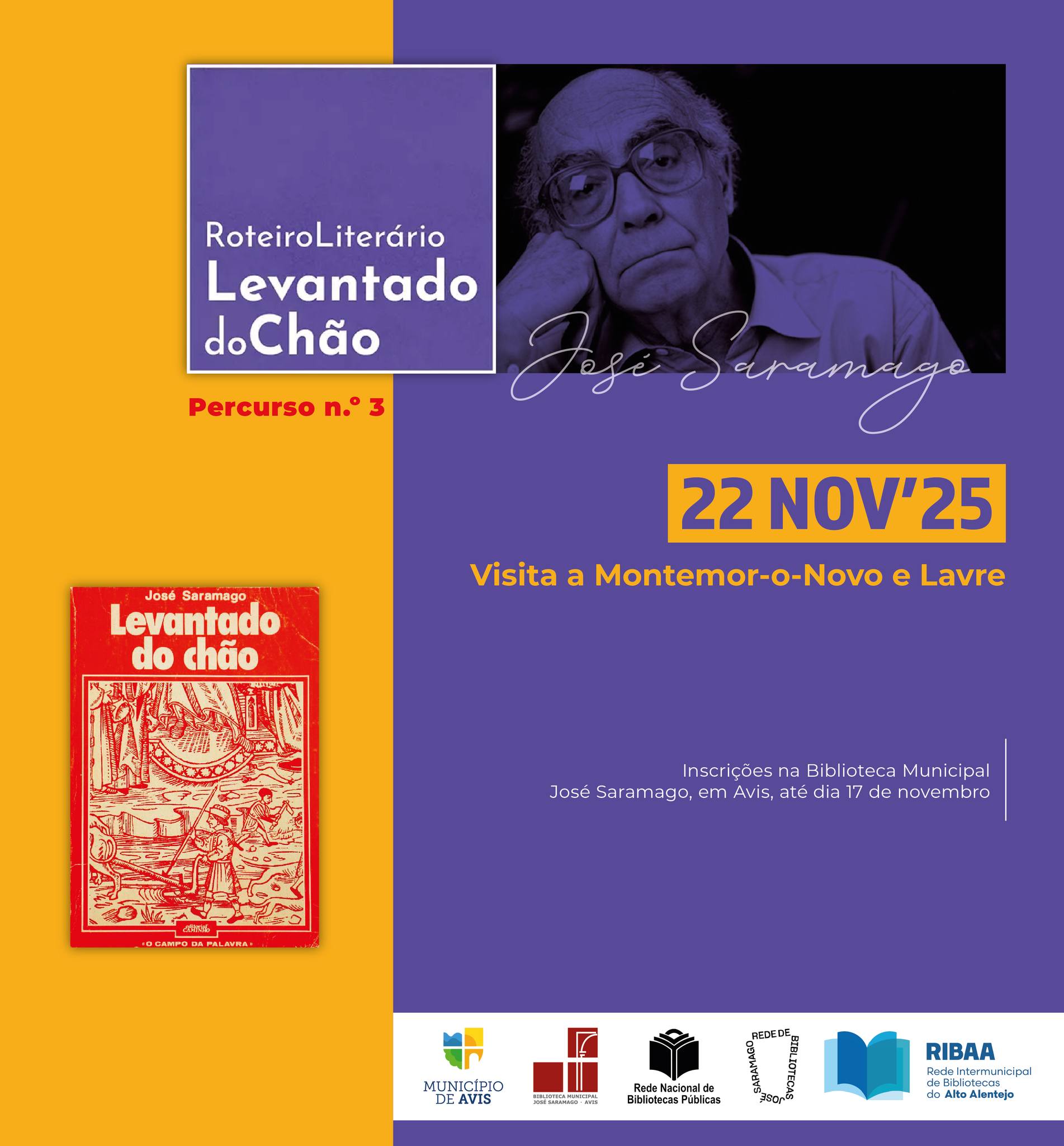 No passado dia 22 de novembro, o Município de Avis celebrou o 10.º aniversário da Biblioteca Municipal José Saramago com uma iniciativa cultural que levou dezenas de participantes a Montemor-o-Novo e Lavre. O programa incluiu uma visita guiada ao Percurso n.º 3 do Roteiro Literário Levantado do Chão, intitulado “José Saramago em Monte Lavre”.