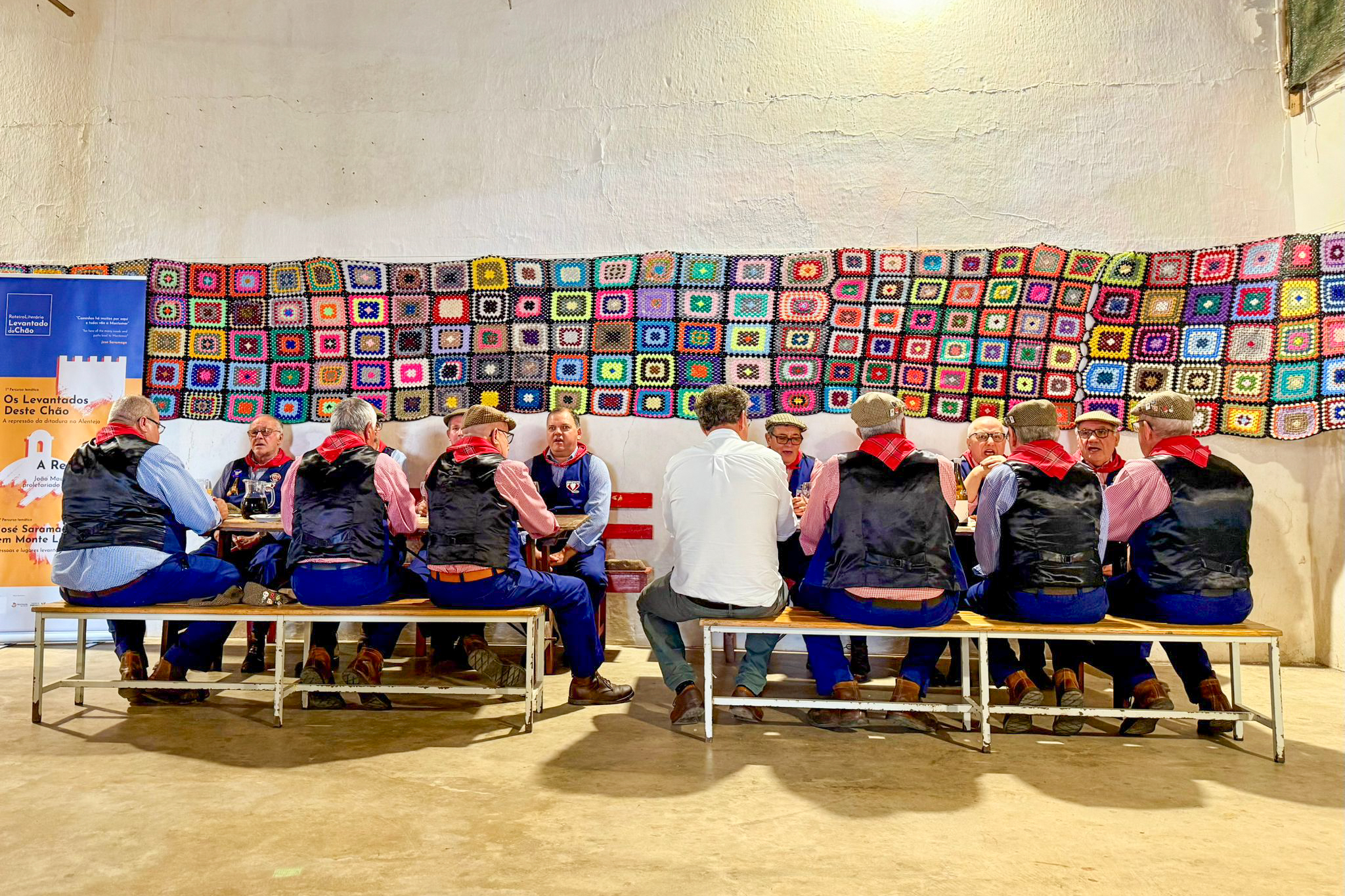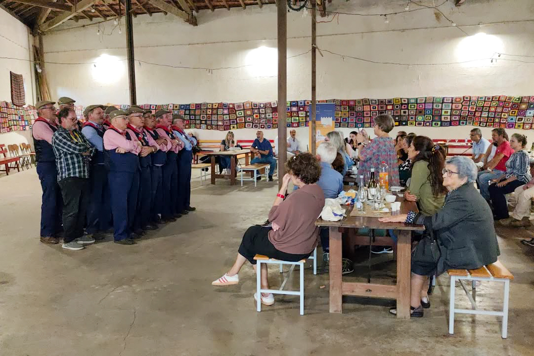 O almoço foi um maravilhoso Cozido em panela de barro, servido pela Petiscaria 3 Marias, acompanhado por uma prova de vinhos da região. Quase a terminar o almoço decorreu um emocionante momento cultural, com a participação do Grupo Coral Fora d’Oras, que através do cante alentejano nos fez viajar até ao tempo da obra ‘Levantado do Chão’. Da parte da tarde, os viajantes realizaram o troço do percurso junto à ribeira de Lavre.